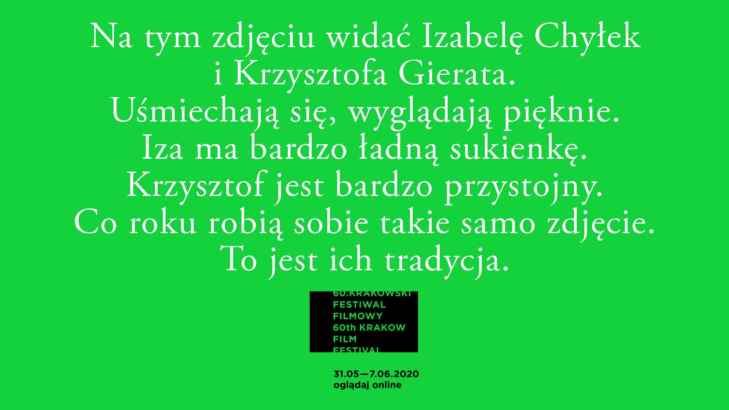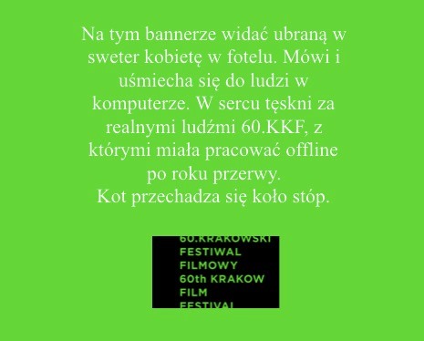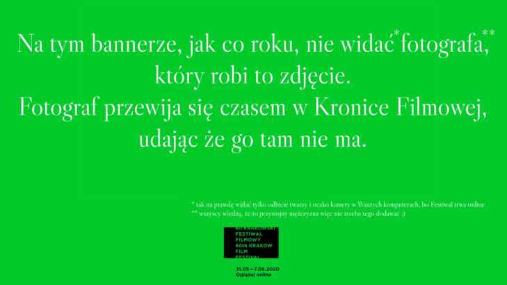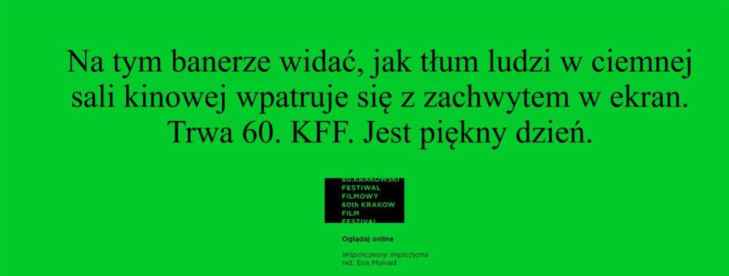 2020 LaureaciSmok SmokówJurorzyFilmyGaleriaPlakatMultimediaGazeta Festiwalowa202520242023202220212020201920192018201720162015201420132012201120102009200820072006200520042003200220012000199919981997199619951994199319921991199019891988198719861985198419831982198119801979197819771976197519741973197219711970196919681967196619651964196319621961Plakat Banery tworzone przez uczestników KFF wzorowane na plakatach 60. edycji Festiwalu
