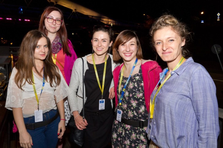 - Dagmara Marcinek (Koordynator obiegu kopii), Barbara Rusinek (asystentka biura programowego), Marta Świątek (Krakow Film Market), Magda Ludwig (asystentka Industry Zone), Karolina Bisping-Adamik (Wydarzenia towarzyszące) / fot. Tomasz Korczyński