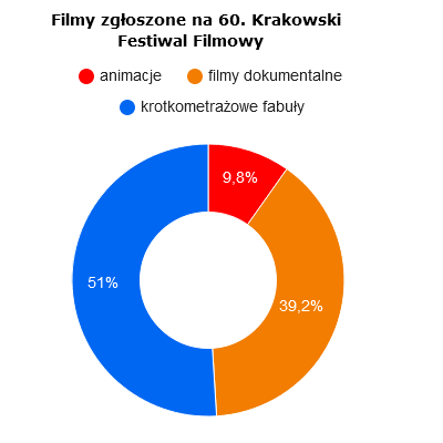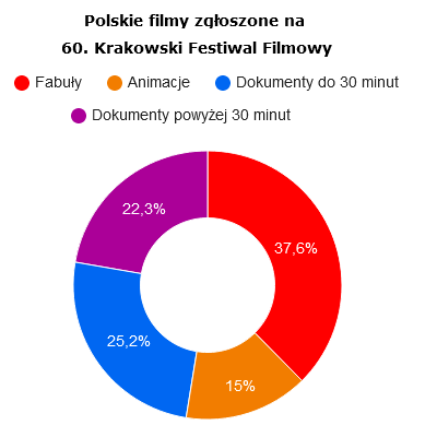 Spośród wszystkich zgłoszonych filmów prawie 300 to filmy polskie lub koprodukcje. Pozostałe tytuły, jak co roku napłynęły do Krakowa z całego świata. Najwięcej z Francji i Niemiec (po 244), Hiszpanii (170) oraz Włoch (107). W czołówce zestawienia znalazły się też m.in. Wielka Brytania i Iran. Jak zwykle nie zabrakło zgłoszeń z odległych zakątków globu m.in. z Azerbejdżanu, Bangladeszu, Burkina Faso, Kongo, Gwatemali, Mongolii, Mozambiku, Nepalu, czy Filipin.